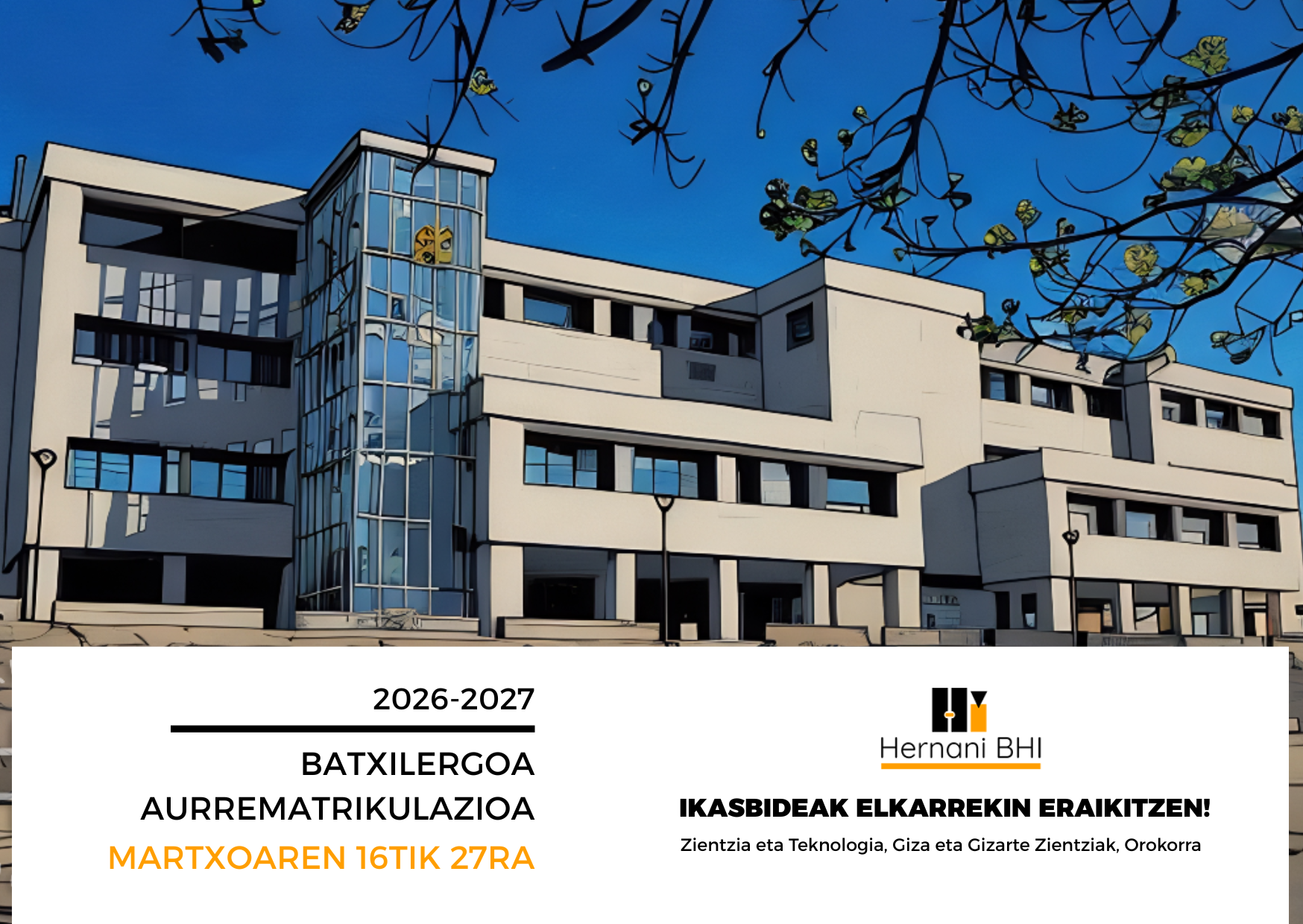 Batxilergoan aurrematrikulatzeko epea zabaldu du 2026-2027rako Eusko Jaurlaritzako Hezkuntza Sailak. Martxoaren 16tik 27ra Ikastexeko idazkaritzan edo Hezkuntzaren webgunean eman daiteke izena.