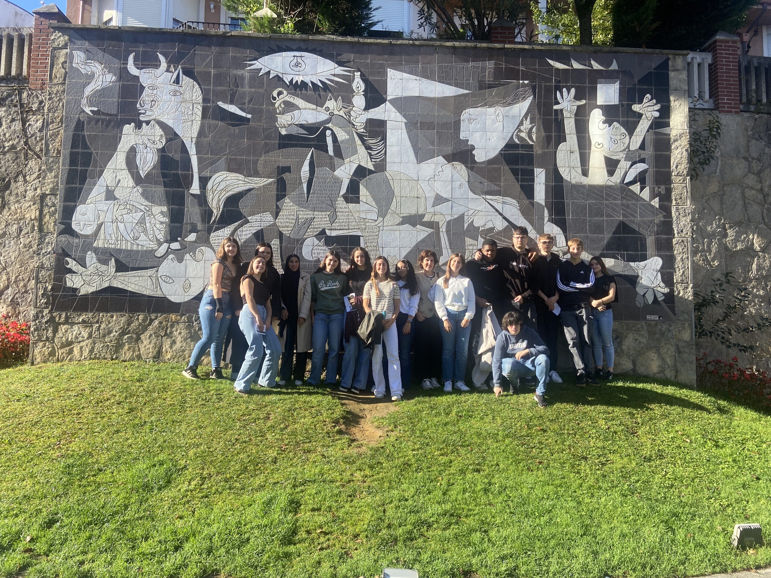 El alumnado de HISTORIA DEL MUNDO CONTEMPORÁNEO de 1º de Bachillerato estuvimos en Gernika. Para recordar el bombardeo del 26 de abril de 1937, comenzamos visitando diferentes lugares del pueblo y terminamos con la visita en el Museo de la Paz.