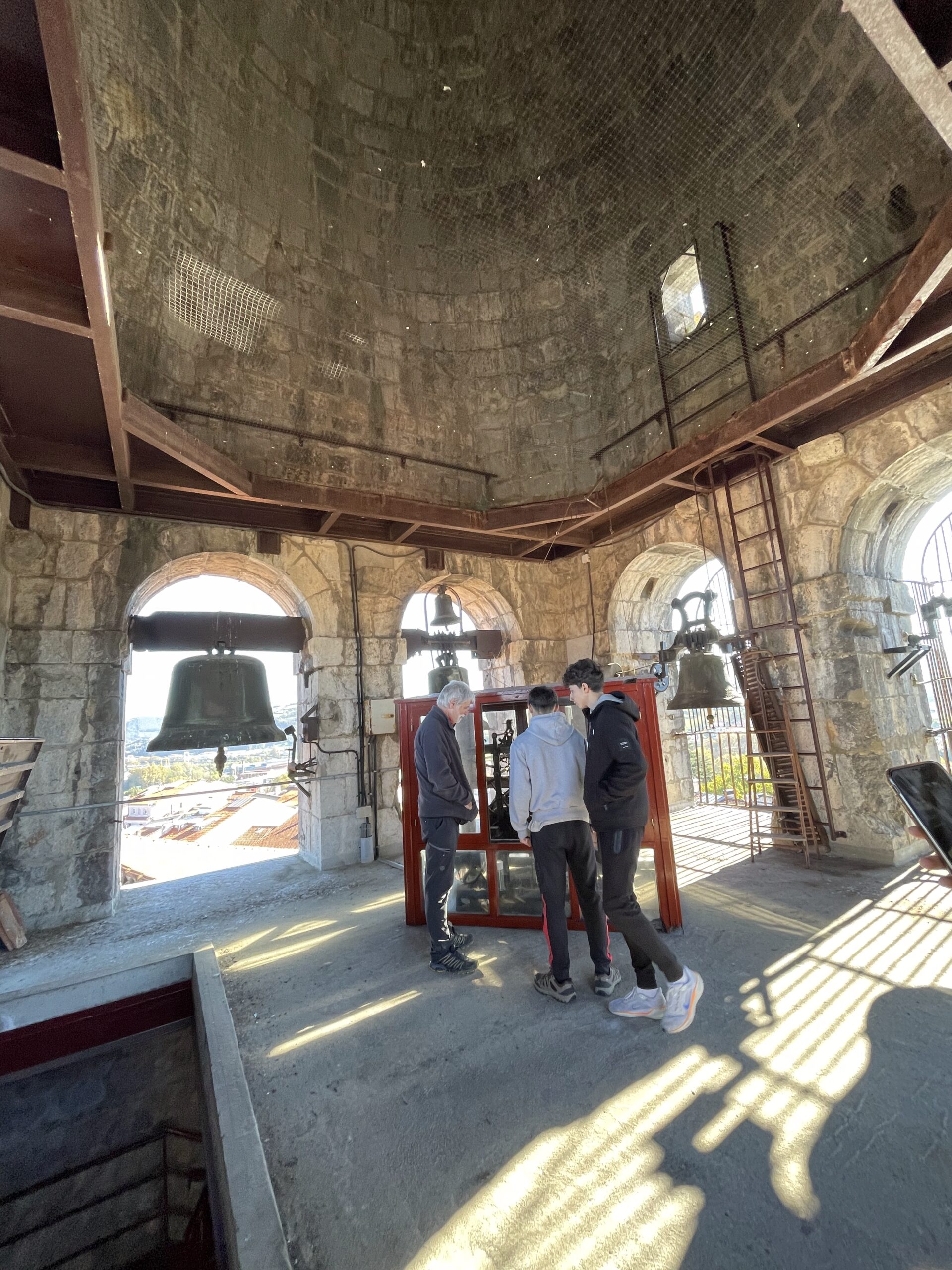 DBH4-ko ikasleek bisita gidatua egin dute eraikinaren dorrea eta sabaia bisitatuz, besteak beste. Ez da arrunta erretabloaren atzeko aldeko enborrak, sabaia eusteko egur zutabeak eta dorrean dagoen XVIII. gizaldiko mekanismoa bertatik ikusteko aukera izatea.